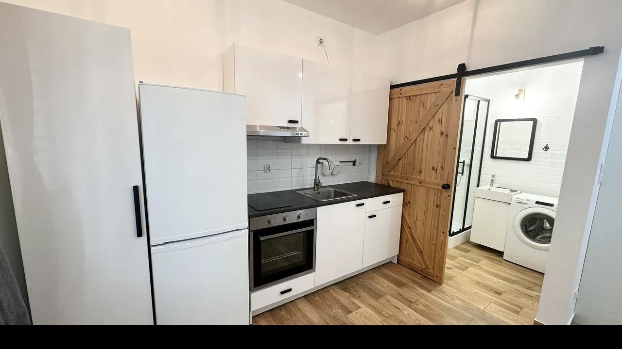 - aneks kuchenny / zlew, okap, szafki, piekarnik, płyta indukcyjna na 2 palniki, lodówka z zamrażarką, szafa z półkami, drobne wyposażenie kuchenne