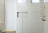 przedpokój - na podłodze terakota, ściany malowane na biało, pokój- na podłodze deski drewniane, ściany malowane na biało, wc - glazura, terakota, kuchnia z dużym oknem w pełni umeblowana, na podłodze gres częściowo otwarta na duży , jasny salon - na podłodze deski drewniane, ściany malowane na biało. Z salonu wyjście na taras z widokiem na ogród.