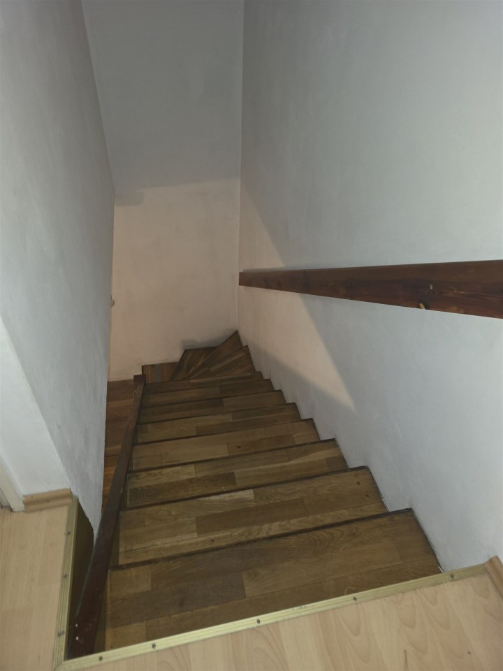 Klatka schodowa: schody wylewane, trepy wyłożone drewnem. ( parter około 67,1 mkw)