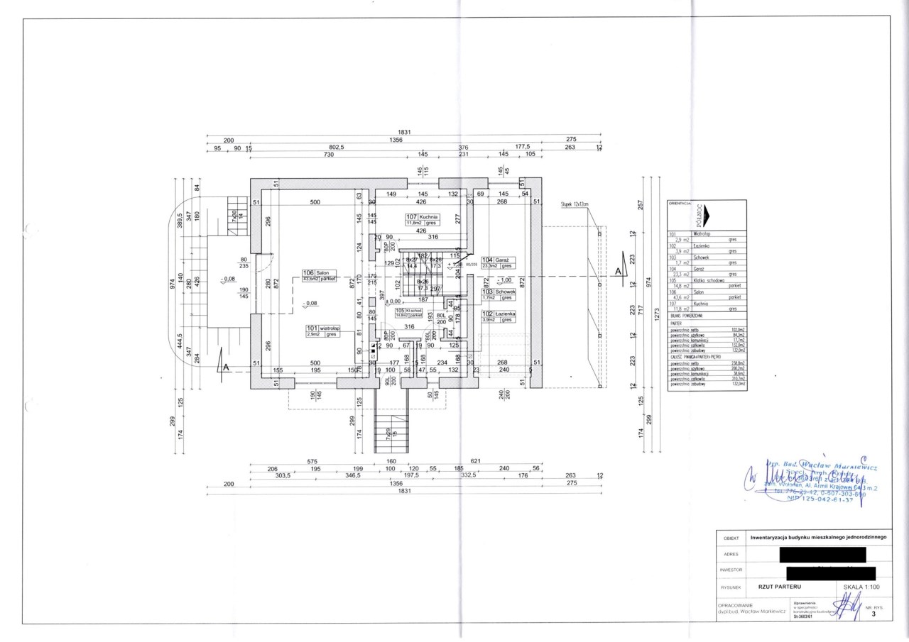 I kondygnacja - podpiwniczenie (- 1) pod częścią budynku , pomieszczenie gospodarcze, pomieszczenie techniczne