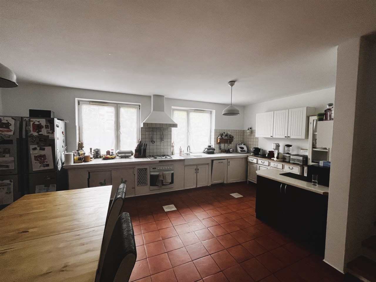 Entrance hall, bright living room with fireplace and access to a terrace with a garden, large semi-open kitchen with a dining area, and a guest bathroom.