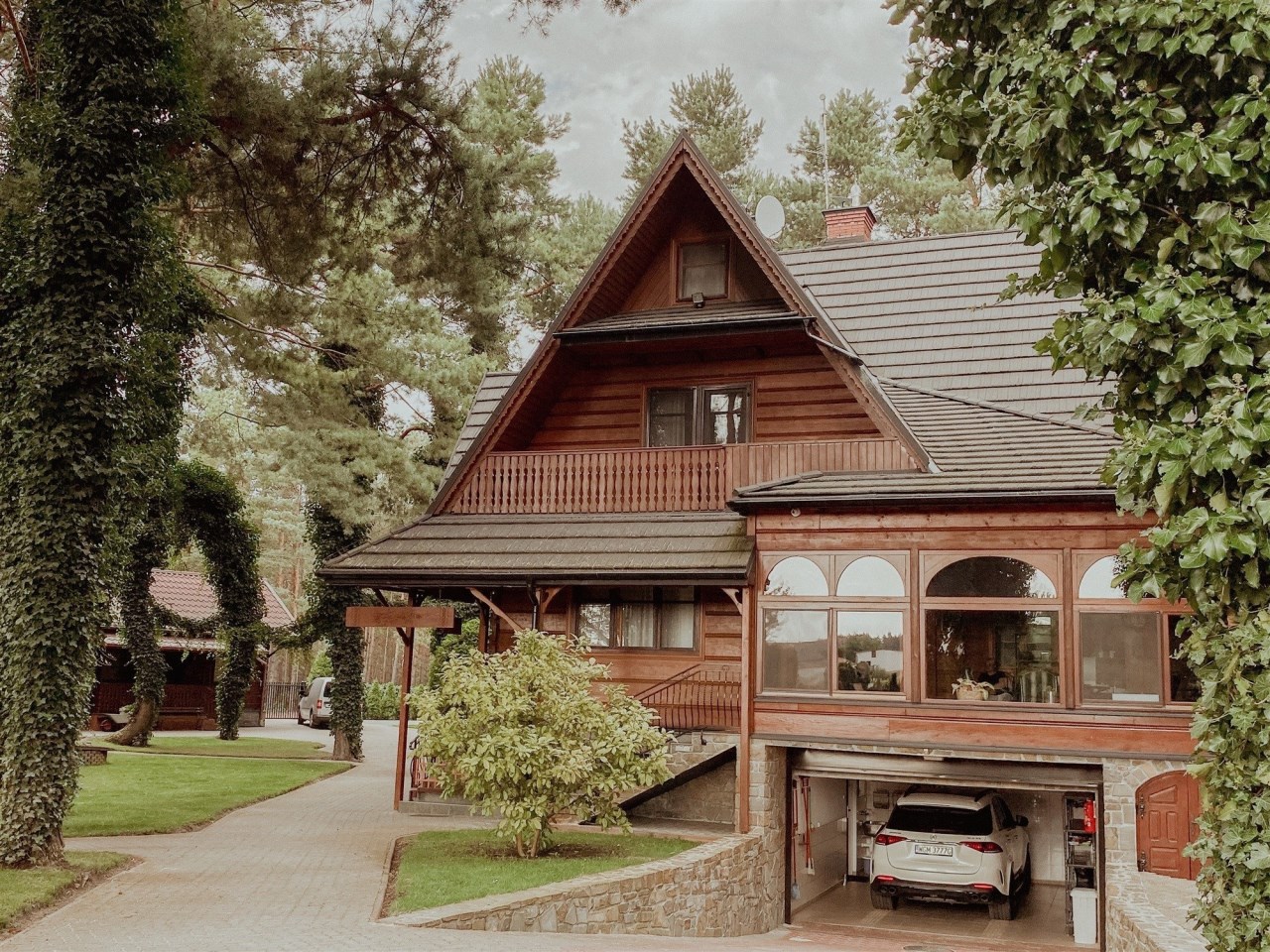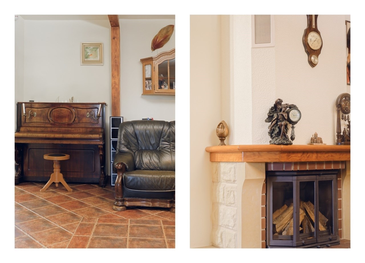 Construction - one-storey house with a usable attic, basement with a functional layout of rooms, adequately illuminated by daylight with unusual window and door frames made of the best custom wood. Wooden log walls, partly brick with ceramic blocks, insulated with polystyrene foam and plastered. Ceilings over the basement reinforced concrete, over the first floor wooden.