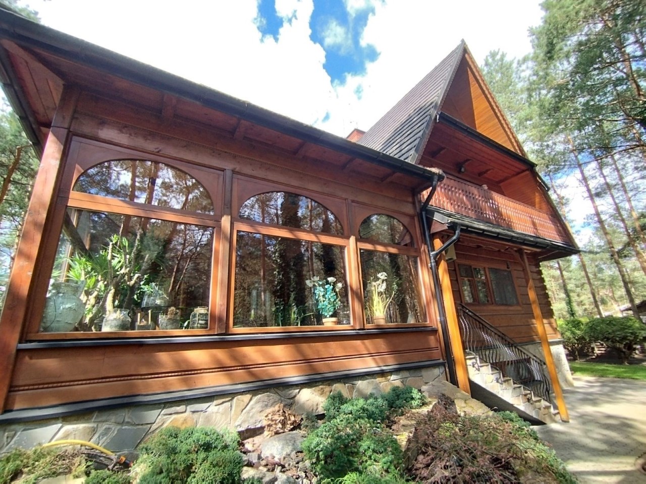 Ta leśna posiadłość została stworzona dla osób, które szukają czegoś więcej niż metrażu — szukają atmosfery, prywatności i jakości życia. Drewniany dom z bali, harmonijnie wpisany w starodrzew, otoczony starannie zaprojektowanym ogrodem, tworzy przestrzeń, w której naprawdę można zwolnić.