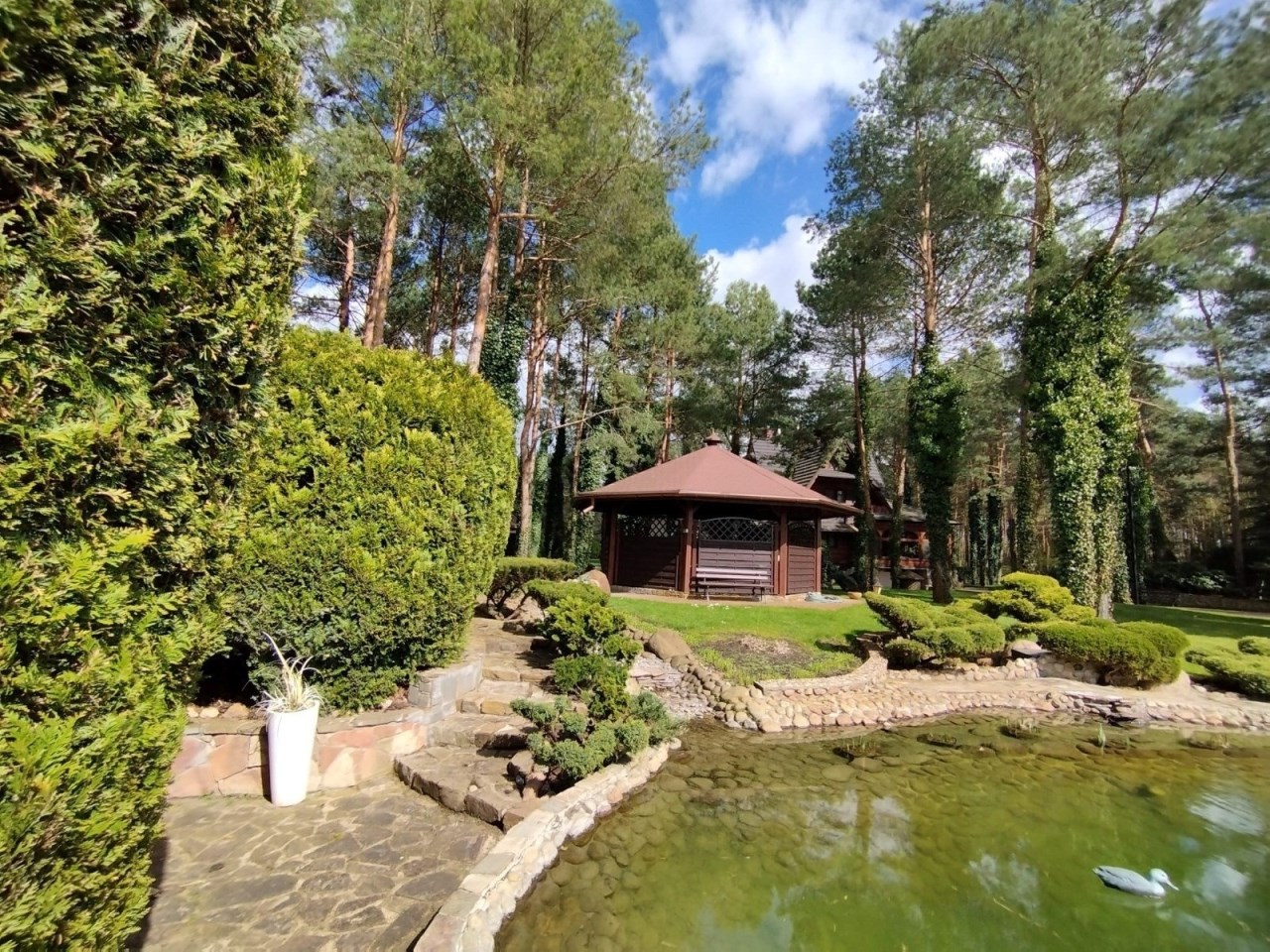 Położony w otulinie lasu, na ponad 7 000 m² prywatnej, dopracowanej zieleni, oferuje ciszę, przestrzeń i klimat, którego nie da się odtworzyć w nowych inwestycjach.