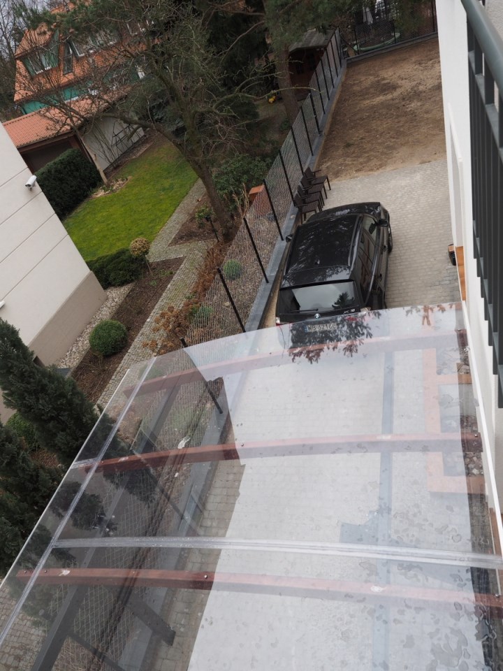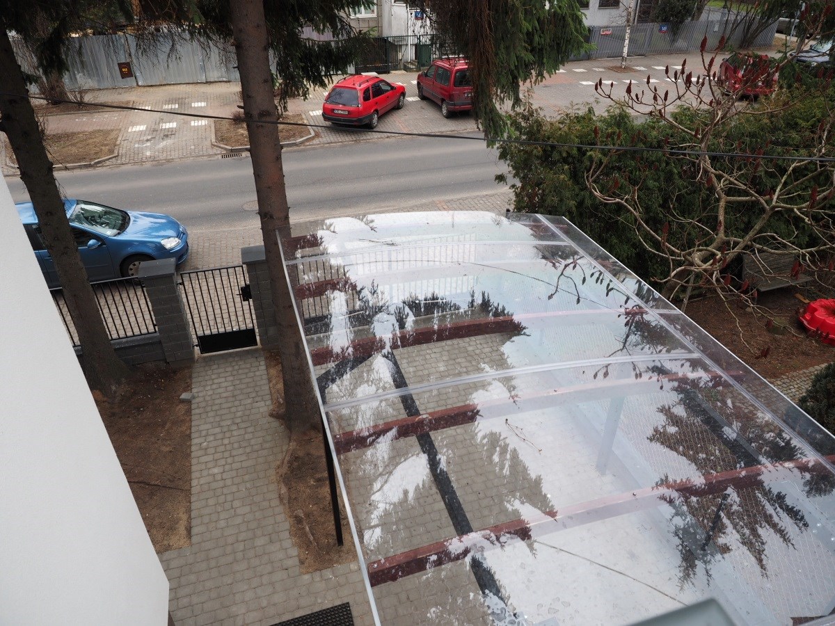 Balkon na 1 piętrze, taras. 2 miejsca parkingowe na działce pod wiatą.
