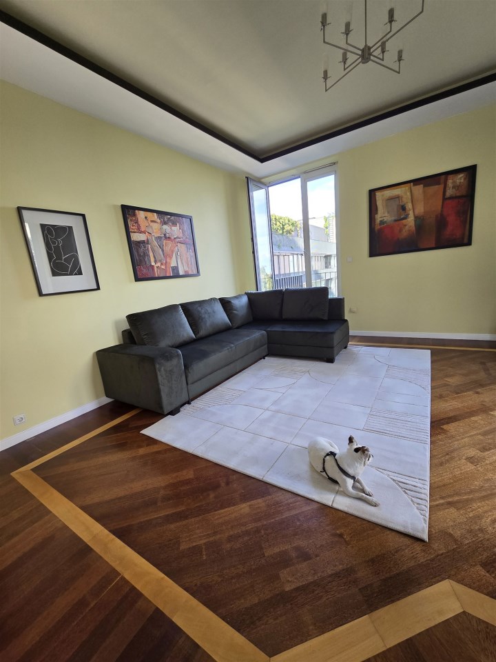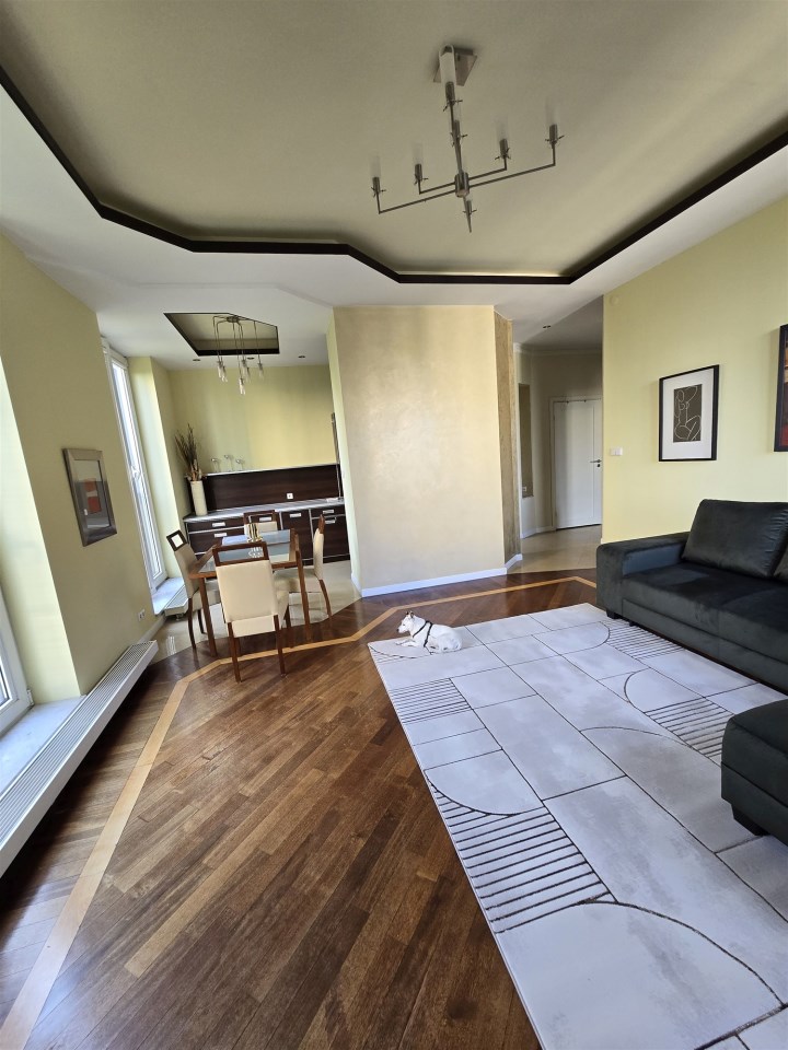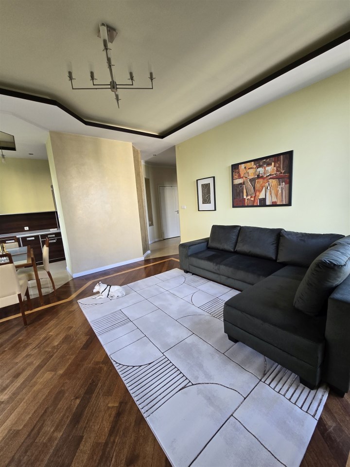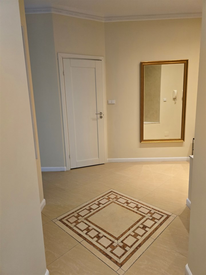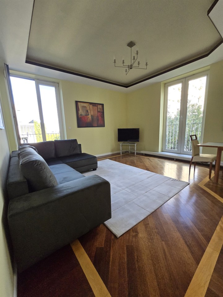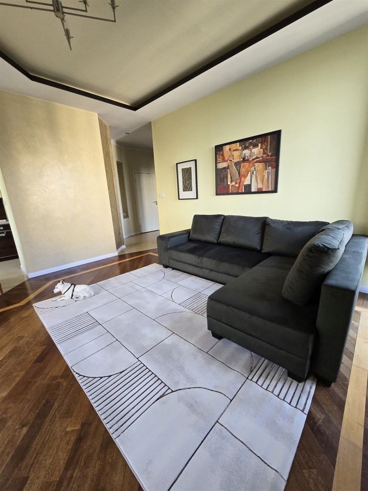 I recommend to rent apartment with an area of 80 square meters, consisting of a living room partially connected with the kitchen, 2 bedrooms, 2 bathrooms, in one bathroom with shower and in the other bathroom with bathtub, bright kitchen (fully furnished + appliances), separate closed dressing room, balcony, spacious hall. Double-sided flat. Finished to a high standard, the floors are exotic parquet, stoneware. Rooms fully furnished. Windows in all rooms large, panoramic, from floor to ceiling, very bright flat, windows overlooking the patio, quiet greenery, very nice cage, porter's lodge with reception desk working 24 hours, security in the building 24 hours, the building is intimate.